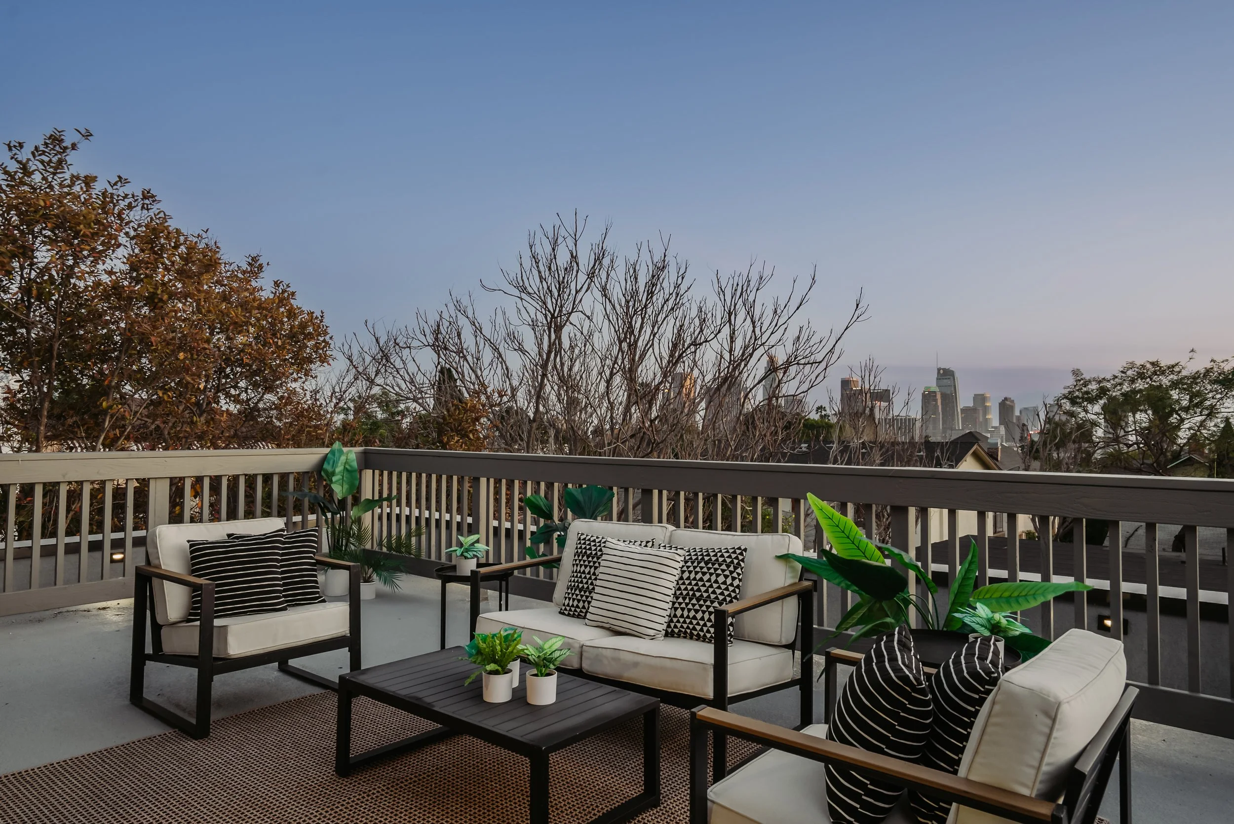 This 1903-built centennial craftsman in the Angelino Heights Historic Preservation District has been impressively upgraded while still retaining its old-world elegance. From the covered porch, step inside to discover a fusion of engineered hardwood, gleaming marble, and porcelain tile flooring in the sunlit interior where timeless aesthetic spans throughout the living space. Among the well-sized bedrooms, your primary suite surpasses all with bay windows and a sleek ensuite showcasing a soaking tub in the glass-enclosed shower. Well-equipped, the open kitchen highlights chef-grade appliances, custom enclosed hood range, Pfister faucets, and quartz countertops to complete this stunning culinary space perfect for cooking up a storm and entertaining guests. The detached ADU is a fully outfitted 3-bed, 2-bath with a full kitchen, island, and living area. Admire the panoramic views of DTLA, the Hollywood sign, and the Griffith Observatory from an impeccable location sheltered from the hustle and bustle of the city.